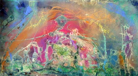 Carol's work encompasses a variety of media, including oil painting on canvas and printmaking (most notably etching and silkscreen). Always attracted beyond the conventional, her works can best be described as collages, using ink, pastel, wax, and other 'mixed media' on fabric, paper and other grounds. Carol especially enjoys creating images by building up surfaces and composite images with overlays. Experimentation is an important part of her creative process.