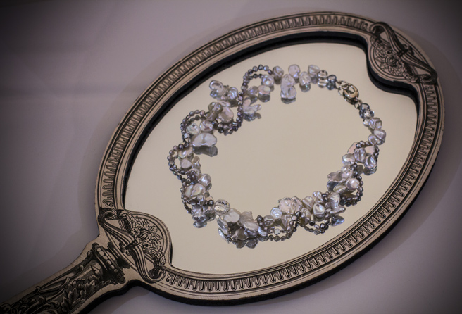 With pearls and crystals. Rich and lustrous