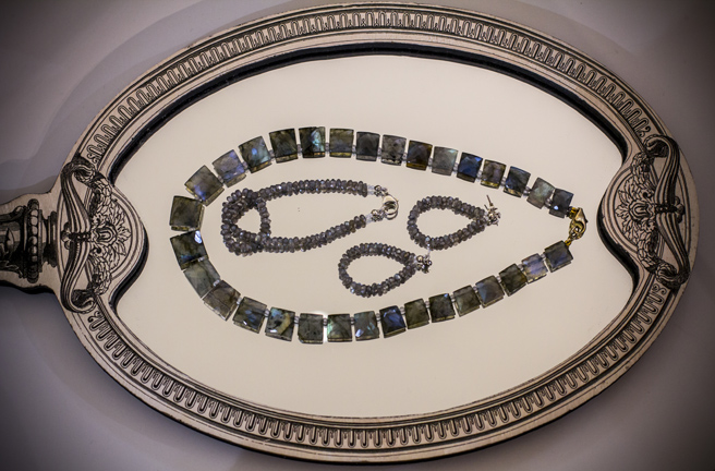 The elegance and craftsmanship of the exclusive design and glow of the pearls and crystals and semi precious stones, which Carol makes sure to choose very carefully each one at a time.